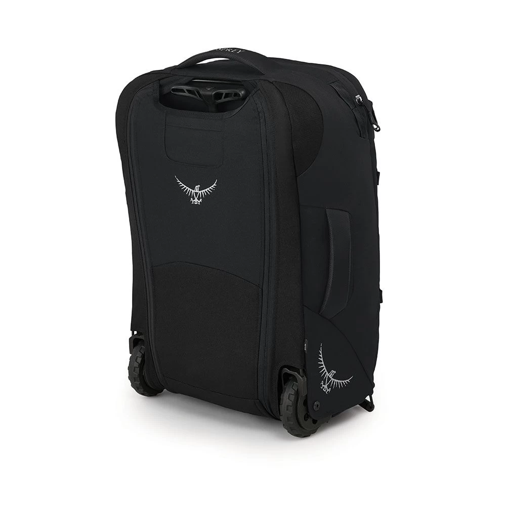 De Osprey Farpoint 36 Wheeled Travel Pack-handbagage voor heren geeft je de keuze tussen energiebesparende wielen of een capabele lichtgewicht rugzakvering wanneer het pad naar voren ruw wordt.