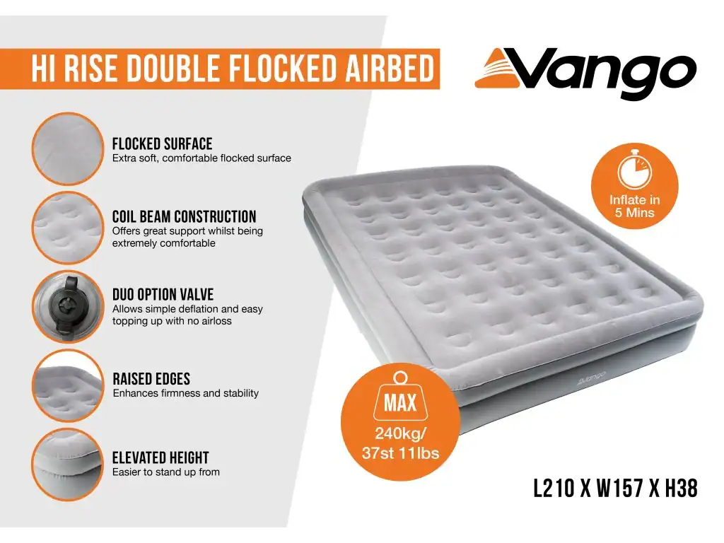 VANGO Hi-Rise Dbl flckd Airbed gry